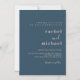 Modern, schlicht, elegante Hochzeiteinladungskarte in Blau, Beige. Über "weiteres personalisieren" können Schriftart/Größe/Farbe und Position verändert werden.