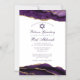Elegante decoração roxa e dourada em ágata adorna a lateral deste convite magnético chic de cerimônia e festa de Bat Mitzvah. O nome da sua filha está escrito em bela caligrafia cursiva sob a Estrela de Davi. Um convite magnético moderno e trendy para uma garota judia chic sendo chamada ao Torá.