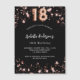 Um fundo preto clássico, decorado com estrelas douradas rosa. Personalize e adicione um nome e detalhes da parte. O número 18 é escrito com um script de estilo de balão.