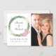 Moderno eucalipto geométrico verdejante e rosas cor de rosa salmão convite de casamento magnético para salvar a data com moldura geométrica dourada.