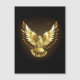 Pombo dourado voando em um fundo preto.
