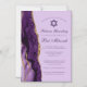 Elegante decoração de ágata roxa e dourada adorna a lateral deste convite magnético de cerimônia de Bat Mitzvah lavanda e festa. O nome da sua filha está escrito em bela caligrafia cursiva sob a Estrela de Davi. Um convite ímã moderno e trendy para uma garota judia sofisticada sendo chamada ao Torá.