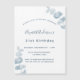 Um fundo branco, decorado com caules de eucalipto azuis, cinzas. Personalize e adicione um nome e detalhes da parte.