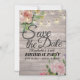 Modelos de Convite para Imã salve o dia Modernos - Script Elegante com Flores de Rosas Rosa e Luzes de Cordas no Fundo da Madeira Rústica. Um Design perfeito para o seu grande dia. Todo estilo de texto, cores, tamanhos podem ser modificados para ajustado das suas necessidades!