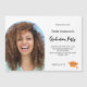Adicione sua própria foto vertical do formando. Um quadro fotográfico em forma de arco. Uma cor branca de fundo. Personalize e adicione um nome e detalhes da parte.