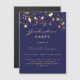 Um ímã de convite glamouroso para uma festa de formatura 20xx (qualquer ano) para ele e para ela. Um fundo azul marinho decorado com estrelas douradas falsas. Personalize e adicione um nome e detalhes da parte. O texto Graduação e o nome são escritos com um script de estilo moderno, escrito à mão. Texto colorido do ouro.