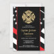 This design features a firemen's flag with black and white stripes, and a thin red line stripe as well. A fireman's badge sits above all of the party details for the retiring firefighter, lieutenant, or chief's retirement party.