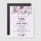 Um fundo violeta, lavanda, de cor aquosa. Decorados com flores violetas e púrpuras, de cor aquosa e verde e uma cruz de ouro. Personalize e adicione um nome e detalhes de recepção.
