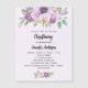 Um fundo violeta, lavanda, de cor aquosa. Decorados com flores violetas e púrpuras, de cor aquosa e verde e uma cruz de ouro. Personalize e adicione um nome e detalhes de recepção.