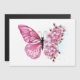 Flower arrangement of pink butterfly with pink Japanese cherry blossoms on white background.