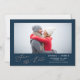 Esta simples imã salve a data rosa e marinho azul apresenta uma grande fotografia e uma caligrafia moderna. Abaixo de uma grande foto de paisagem, "Salvar a Data" é escrito em letras rosa gold em um fundo azul marinho. À direita da design de tipografia, os nomes dos casais, a data do casamento e a localização do casamento são escritos em branco.