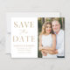 Anuncie sua data de casamento com esta na moda, imã salve a data de fotos moderna. O design apresenta "Salvar a Data" em fontes de script e serif douradas com um fundo branco. Personalize a imã salve a data minimalista adicionando seus nomes, data, local do casamento e foto. A simples imã salve a data é perfeita para qualquer tema de casamento.