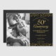 Com delicada confete de coração dourado, você pode personalizá-lo com sua foto especial e informações para salvar a data do aniversário de cinquenta anos em letras douradas elegantes em um fundo preto. Projetado por Thisisnotme©