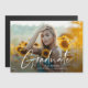 Um Ímã de Anúncio de Formatura em Script Moderno com foto horizontal em bleed total com fonte manuscrita na frente com nome e detalhes da formatura. O verso é um ímã. Clique no botão editar para personalizar este design.