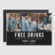 Casamento engraçado salve os cartões magnéticos de data em um moderno design preto de três fotos que lê "Bebidas grátis e vamos nos casar".