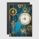 Convite Magnético Fundo de turquesa Steampun com engrenagens