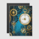 Convite Magnético Fundo turquesa de Steampunk com Engrenagens