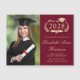 Anúncio de cartão magnético vermelho de formandos vermelho de burlão moderno, com "Classe de" dentro de uma coroa de louros, um boné de formando e um diploma, uma foto do formando e seu nome em um roteiro elegante de ouro claro. Adicione sua escola, grande, honras ou planos futuros na tipografia moderna de ouro leve.
