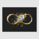 Símbolo Dourado e brilhante do infinito, decorado com pena de joalharia de pavão com turquesa sobre fundo preto.