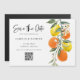 Convite Magnético Laranja Botânico e Código QR de Limão Guardar Data