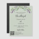 Um fundo verde sábio. Decorado com flores lavandas e eucalipto verde. Personalize e adicione seus nomes e detalhes.