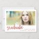 Imagem do anúncio de formatura de fotos moderna e elegante. Fonte de script em negrito manuscrito (folha rosa ouro é um efeito de foto impresso) com a palavra "formando" com design de quadro de foto. Substitua a foto de exemplo pela sua. Cores de ouro branco e rosa. Outros estilos e cores disponíveis.