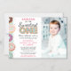 Crie um convite de foto com ímã para guardar de recordação! O seu doce pequeno merece uma festa de aniversário deliciosa! Este tema de donuts Sweetest One é cheio de diversão com cores modernas e confeitos por cima. Fofo, memorável e perfeito para a festa de primeiro aniversário do bebê!
