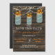Lenha rustica de celeiro, luzes de cordas com folhas de maple em um jarro de pedras caem magnético Salve a data. Produtos correspondentes também disponíveis.