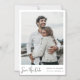 Este simples e na moda moderno casamento fotográfico salve a data em que o imã modelo apresenta os seus nomes, data e localidade de casamento por baixo da sua fotografia, juntamente com uma mensagem 'salve a data' veiculada com uma fonte viva e relaxada. Este script de data salvo em preto é uma imagem e não pode ser alterado. Você pode optar por alterar a fonte, a pontuação ou a cor usada para outros elementos de texto deste design. Por exemplo, você pode optar por dar uma certa cor ao texto que você edita para mostrar seus próprios detalhes. Os nomes, a data e o texto da localização são um preto ligeiramente suavizado por predefinição. Faça isso simplesmente magnético chic, salve o cartão de data exclusivamente seu com as ferramentas intuitivas de design, sua foto favorita e sua inspiração. Temos uma seleção de outros cartões salve a data modernos minimalistas em vários formatos, por isso, por favor, olhem!