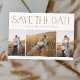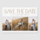 Um casamento de colagem de fotos Elegante Typografia 3 Salve a data com o tipo moderno e o layout simples na frente. O fundo é um ímã. Clique no botão editar para personalizar este design.