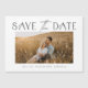 Um casamento de fotos de tipografia elegante Salve a data com o tipo de script moderno e o layout simples na frente. O dorso é magnético. Clique no botão editar para personalizar este design.