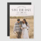 Casamento De Foto Da Tipografia Elegante Salva O Convite Magnético De Data. Apresenta nomes curvos cômicos, uma fotografia vertical sangrada de cheio e texto formal. Clique no botão editar para personalizar este design.