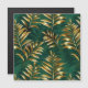 Padrão contínuo de ouro, joias, ramos e folhas de samambaia brilhantes em fundo verde, florestal e texturizado. Samambaia dourada.