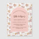 Um quadro de arco sobre um padrão de grama pampas e flores cor-de-rosa e uma cruz ouro. Personalize e adicione um nome e detalhes.