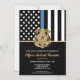 Honre a dedicação e o trabalho de duro de um novo oficial de polícia com este convite de formatura policial personalizável. Apresentando um crachá policial e a bandeira da polícia com riscas brancas e pretas e uma orgulhosa linha azul fina, esta design simboliza força, serviço e sacrifício. O convite é personalizado com o nome do formando em letras douradas, fazer-o como uma lembrança memorável para amigos, familiares e colegas oficiais. Perfeito para celebrar a graduação, promoção ou marco de uma academia de polícia na carreira de um futuro oficial. Convide seus convidados em estilo e mostre suporte para o membro mais novo da comunidade de linha azul fina.