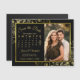 Estes belos cartões magnéticos negros e dourados são a forma perfeita de deixar a sua família e amigos saberem salvar a data do seu próximo casamento. O elegante design apresenta a sua dentro fotográfica de uma estrutura falsa de folha de alumínio de ouro com delicadas curvas e espirais nos cantos. Há uma inscrição no roteiro de ricos e um calendário personalizável mostrando seu mês de casamento com um coração ao redor do seu dia especial. Conveniente e prático, este cartão é certamente agradável.