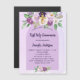 Um fundo violeta, lavanda, de cor aquosa. Decorados com flores violetas e púrpuras, de cor aquosa, e com uma cruz ouro. Personalize e adicione seu nome e detalhes de recepção.
