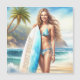 Imagem artística com uma garota e um surfboard, que vive livre de esporte e diversão, em uma paisagem maravilhosa de natureza exótica.
