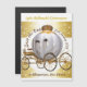 Um belo anúncio de ouro e Quinceañera para salvar a data. Esta design de carruagem de princesa mágica tem um texto fácil de personalizar para o nome da sua filha, a data e a localização da celebração. Mostrado em um tamanho padrão de cartão postal.