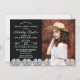 Mais doce do que o doce convite para festas de formatura magnéticas de solteiro preto de renda rústica. Simplesmente personalize com sua foto de formando, nome, escola e detalhes da festa. Design por Holiday Hearts Design (direitos reservados). Crédito de modelo para Ionut Comanici na Unsplash. Observe que um filtro de fotos preto e branco foi aplicado à foto de modelo que também aparecerá na sua foto — isso pode ser removido se não for desejado, clicando em "personalizar" e mudando o filtro para "nenhum" ou para um dos vários filtros disponíveis para aprimorar sua foto conforme desejado.
