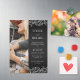 Convite para casamento de fotos magnéticas em preto com fontes brancas elegantes e traços semelhantes a rendas de arranjos de flores desenhadas à mão com rosas e hálito de bebê. Adicione uma foto na frente do convite para o casamento floral.