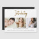 Compartilhe a alegria da chegada do seu pequeno com este cartão de anúncio de nascimento de bebê personalizado com 3 fotos e escrita em dourado em forma de ímã. Com tipografia elegante e espaço para três fotos preciosas, este cartão magnético captura lindamente a essência dos primeiros momentos do seu recém-nascido. Personalize com o nome do bebê, detalhes do nascimento e nome dos pais. Uma maneira atemporal de anunciar seu pacote de alegria! Um detalhe de coração doce na escrita "Apresentamos".