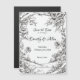 Um design preto e branco elaborado, rústico, com um toque de um livro de histórias. É uma jornada visual para a floresta de 100 acres cercada por flores.