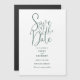 Este convite magnético para salvar a data do casamento com letra esmeralda verde elegante pode ser personalizado com as informações do seu dia especial de casamento. Criado por Thisisnotme©