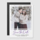Sua foto do casal é mostrada neste elegante, salve o cartão de data. Um quadro branco simples dá-lhe a importância que merece. Salvar a data é escrito em um texto moderno e moderno. Duas linhas de texto permitem personalizar sua mensagem. Projetado para embelezar facilmente qualquer fotografia de estilo em qualquer estação. Muito fácil de personalizar.