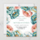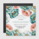 Um arranjo floral de cor aquosa impressionante que inclui turquesa, menta escura, pêssego, e pêssegos e rosas escuros, acentuado lindamente com elementos de diamante e folhagem verde profunda. Perfeito para convites de casamento elegantes!