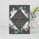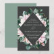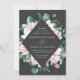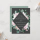 Convites florais elegantes com detalhes de seu casamento cercados por um quadro geométrico de flores de magnólia cor-de-água rosa e folhas verdes de eucalipto contra um fundo de cinza de carvão. O reverso dos convites para o casamento de magnólia apresenta um sólido fundo verde de eucalipto. Projetado para coordenar com nossa coleção de casamento Magnolia & Eucalyptus.