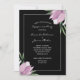 Convide convidados para a sua festa de noivado com uma elegante design de aquarela com flores e folhas de magnólia roxa e branca sobre fundo preto. CORRESPONDENTE A ITENS na nossa loja.