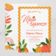 She found her Main Squeeze! | A bright lemon citrus Mediterranean Bridal Shower invitation. A fun bright colorful design for your citrus themed Bridal Shower. Celebrate love with a fresh and vibrant touch using this Bright Minimalist Citrus Bridal Shower Invitation. Featuring a bold orange background accented with subtle hand-drawn citrus illustrations in a delicate outline style, this design brings a modern yet playful elegance to your special event.