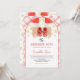Celebre o presente mais precioso desta temporada com nosso convite para o Chá de fraldas de presentes maiores! Perfeito para um chá de fraldas de Natal neutro em termos de gênero, este convite captura lindamente a magia do feriado com uma mão encantadora de Papais noeis segurando um par de pequenos calçados vermelhos. Um arco vermelho festivo arma o design, adornada com flocos de neve de ouro elegantes que trazem um toque de festival. BBS922